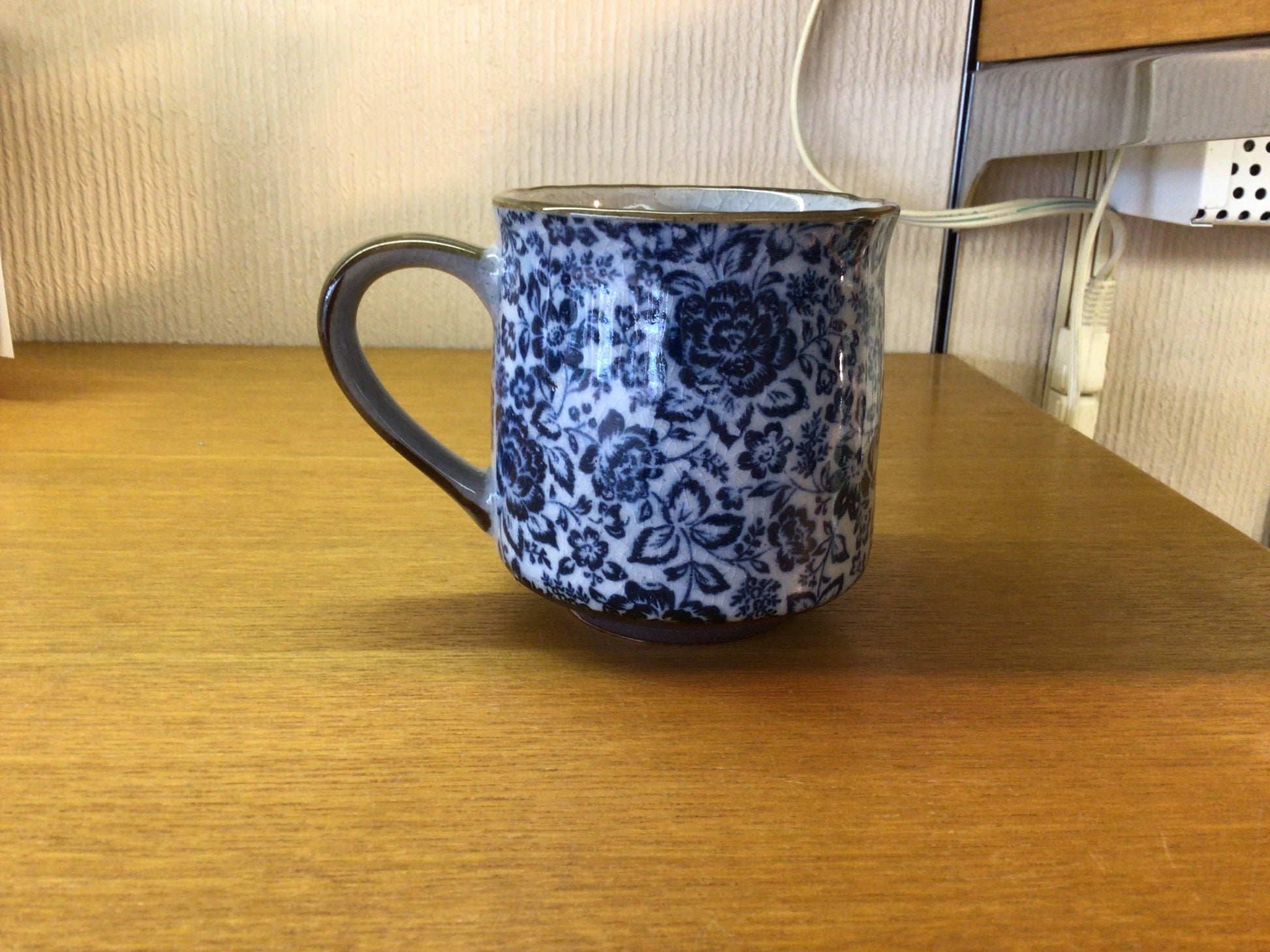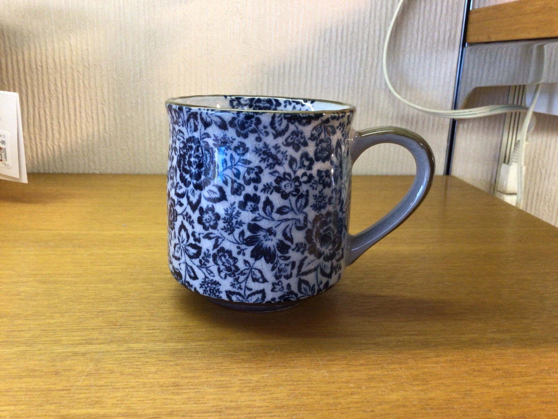 白地に濃紺の薔薇が描かれています。